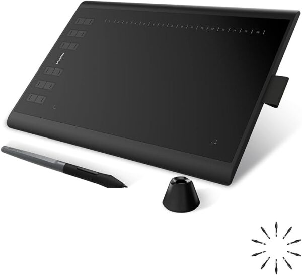 he HUION Inspiroy H1060P is a professional graphics drawing tablet designed for digital artists, designers, educators, and students. Featuring a spacious 10 x 6.25-inch active area, battery-free stylus with 8192 levels of pressure sensitivity, and customizable shortcut keys, it delivers a natural and efficient drawing experience. Compatible with Windows, macOS, and Android devices, it is ideal for drawing, sketching, editing, teaching, and note-taking.